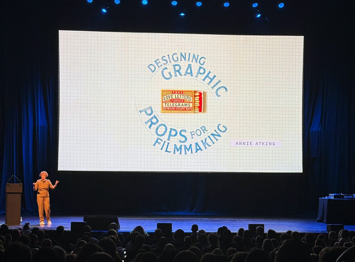 We had a fun day out at this year’s INTL conference in Glasgow and our highlight was Annie Atkins. You’ll almost certainly have seen her work without knowing it, especially if you’ve seen The Grand Budapest Hotel, Bridge of Spies, Isle of Dogs or Joker. Annie specialises in creating graphic props for period film and TV. It’s a niche job but one that’s integral to producing historically accurate and grounded productions.